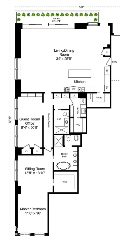 Measuring approximately 2946 SF this loft has it all; sunlight from 3 exposures, 14 oversized windows, city views, a terrace and the full expanse of the grand entertaining space and graciously proportioned private quarters.