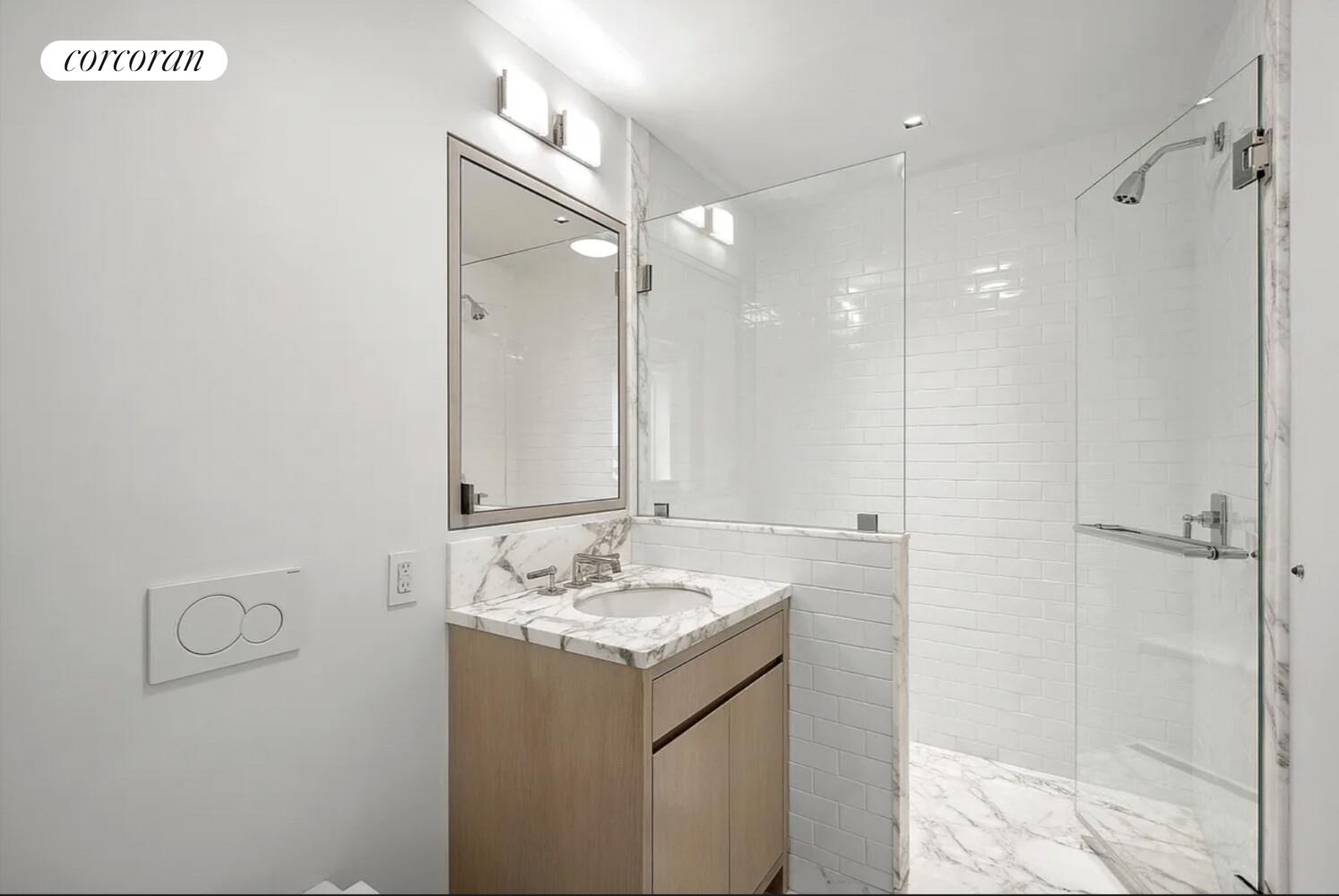 Every inch of the residence has been thoughtfully renovated with care and intention. Wideplank white oak floors , custom oak cabinetry, and elegant Calacatta marble set a refined yet welcoming tone. The renovation also brought meaningful upgrades such as new windows throughout , central air conditioning and a new heatpump system . An added convenience is the private storage space located just across the hallway from the entry.