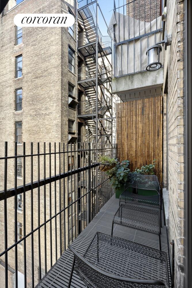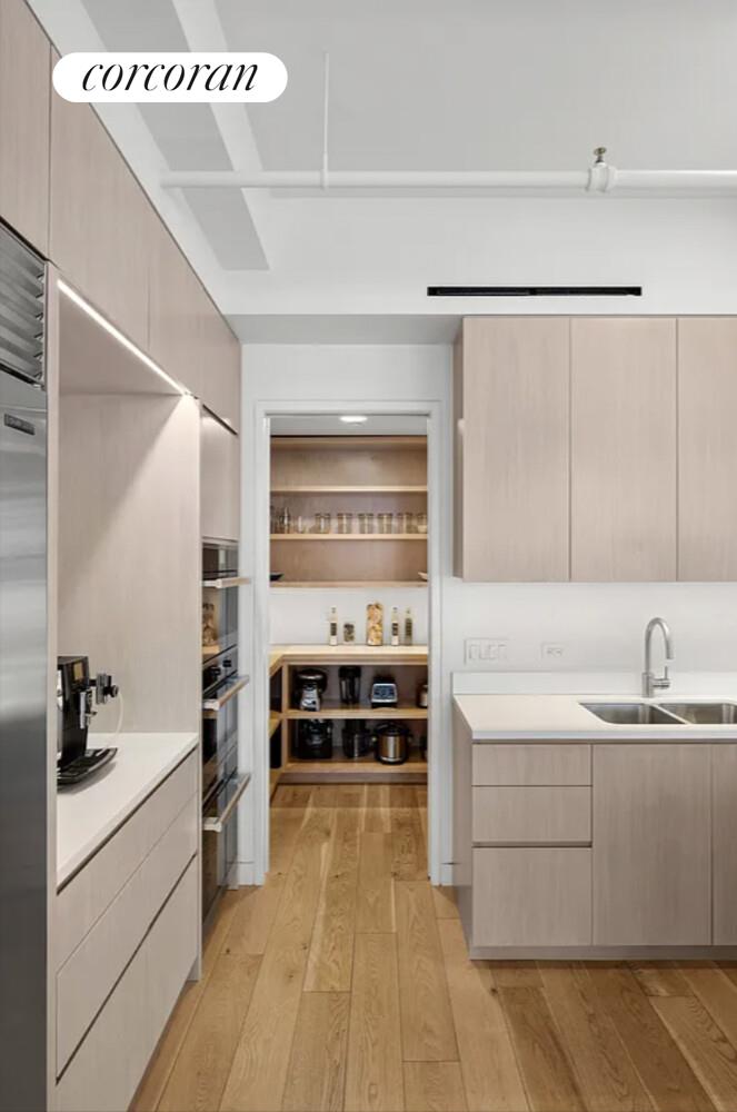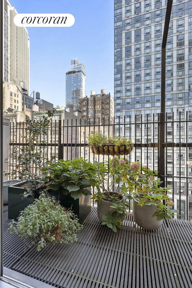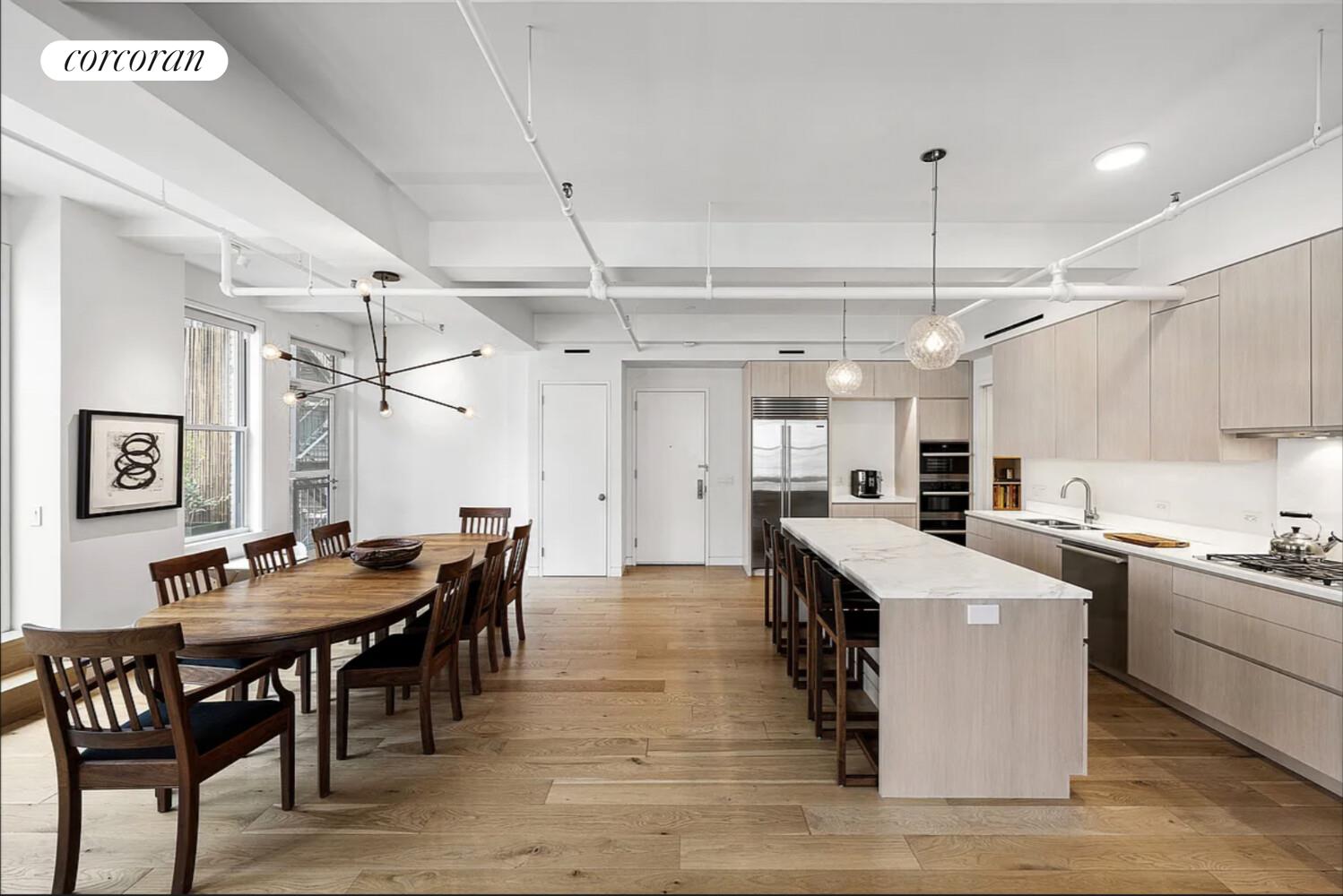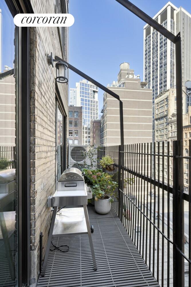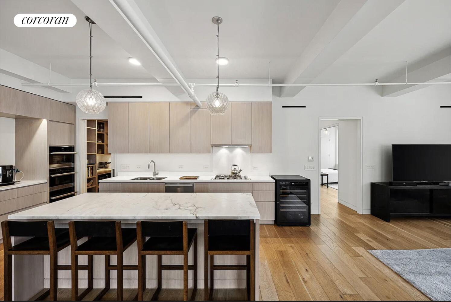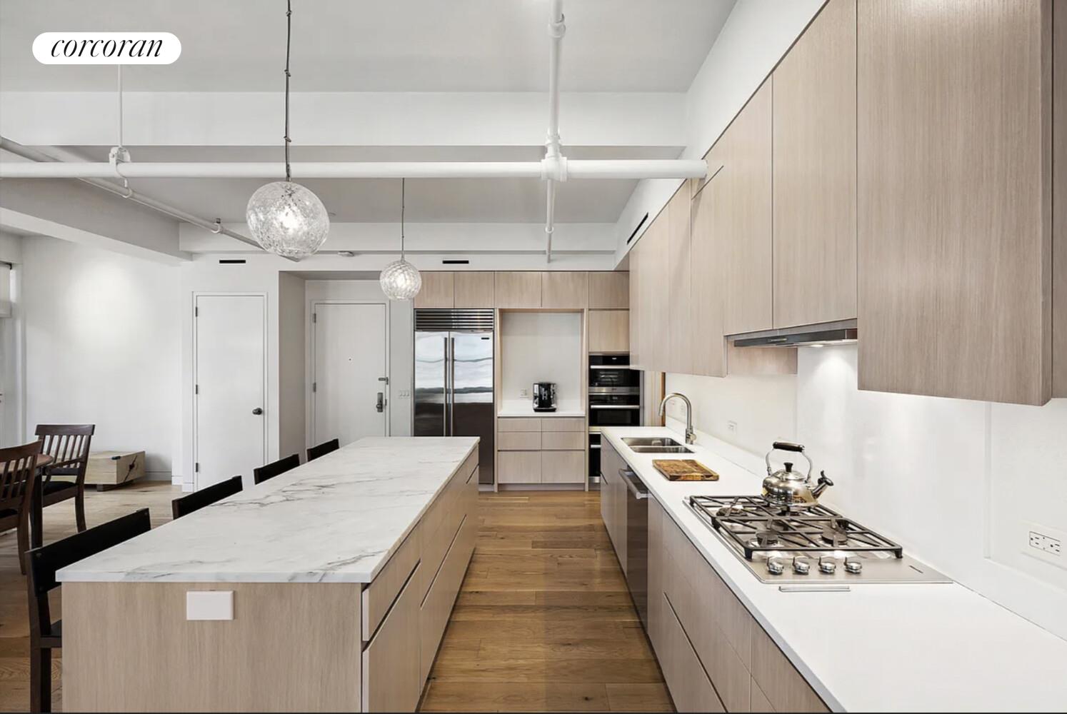 From the living space, step out onto your private terrace, a quiet retreat overlooking the surrounding rooftops. The kitchen and pantry were clearly designed for both daily living and entertaining, with features such as a SubZero refrigerator , wine refrigerator , butcherblock counters , automatic shades , sliding terrace doors, and custom decking that ties indoor and outdoor living together seamlessly.